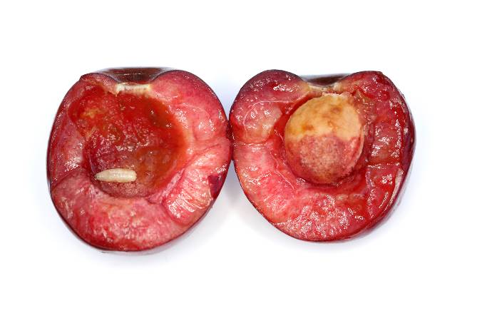 Potřebujete zjistit, zda jsou plody napadeny vrtulí ještě před tím, než se na slupce projeví hniloba? Zkuste se zaměřit na to, zda se na slupce nenachází malé prohlubně a otvůrek, kterým se vrtule do plodu dostala.