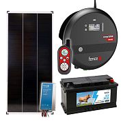 Sada solární elektrický ohradník, 15J zdroj a dálkový ovladač, panel 200 W, regulátor a baterie 95 Ah