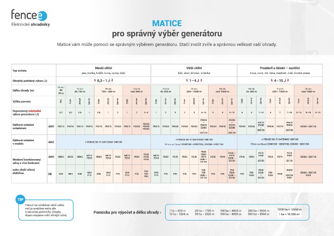 Náš dodavatel elektrických ohradníků fencee vytvořil skvělou přehlednou tabulku, která vám poradí, jaký ohradník vybrat.