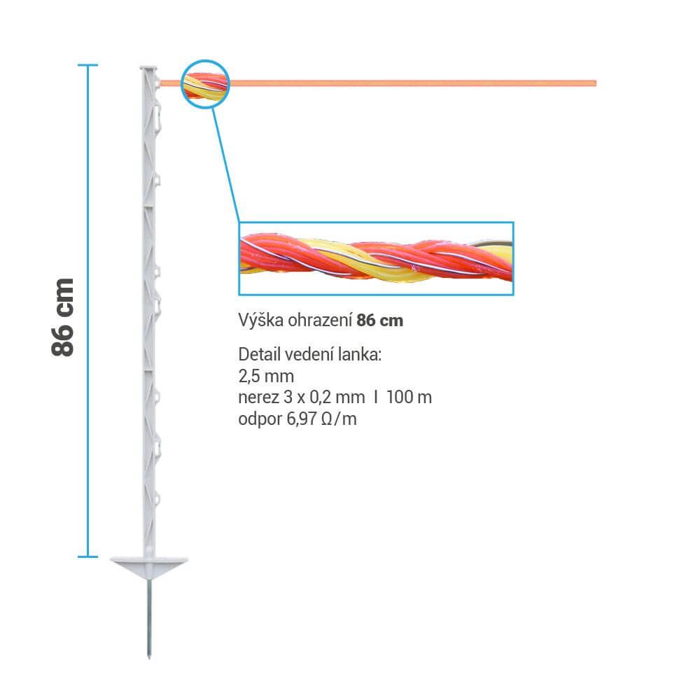 - 10× sloupek 105 cm (86 cm nad zemí), 8× očko