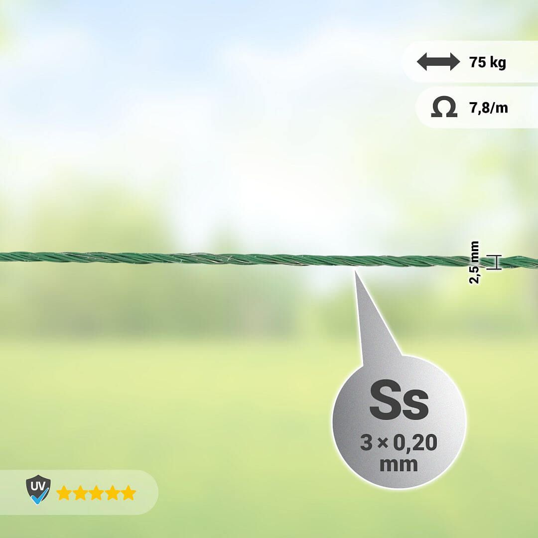 Lanko pro elektrický ohradník, průměr 2,5 mm, zelené, délka 250 m
