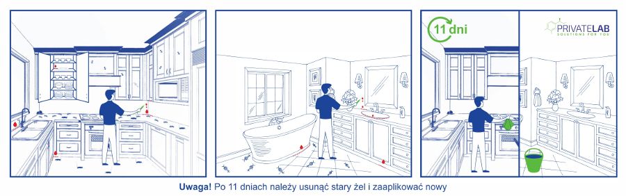Biocidní gel na šváby s aktivní přírodní látkou geraniol spolehlivě hubí různé druhy švábovitého hmyzu. Poradí si se šváby v bytě i v dalších vnitřních a venkovních prostorách. K přípravku doporučujeme pořídit i speciální staničku na gel, která slouží jako ochrana před dětmi, domácími mazlíčky, ale i před deštěm.