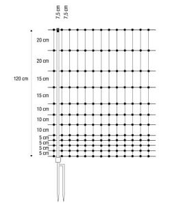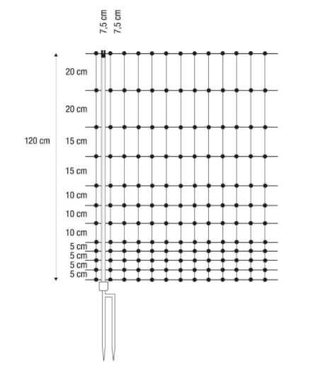 Elektrická síť s 16 tyčemi má 11 vodorovných vodících lanek s 3 x 0,20 mm silným nerezovým vodičem + 1 spodní řada (černé lanko) je nevodivé, izoluje.