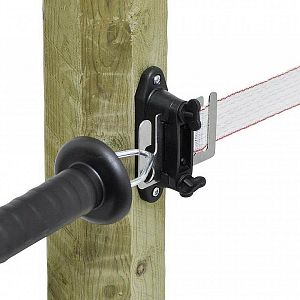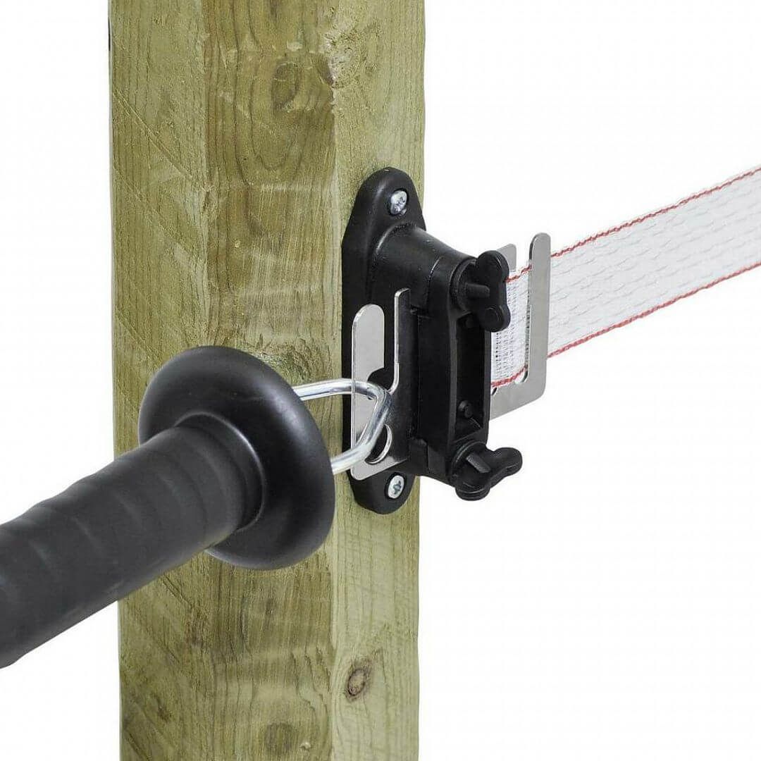 Praktický izolátor, ke kterému z jedné strany připojíte elektrickou pásku a z druhé strany bránovou rukojeť. Lze použít také pro křížení vodičů a k připojení napájení