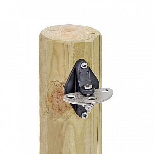 Třístranný koncový izolátor vhodný pro drát k elektrickému ohradníku, vodivá lana, lanka i pásku do 10 mm. Přimontuje se na sloupek dvěma vruty nebo hřebíky (nejsou součástí balení).