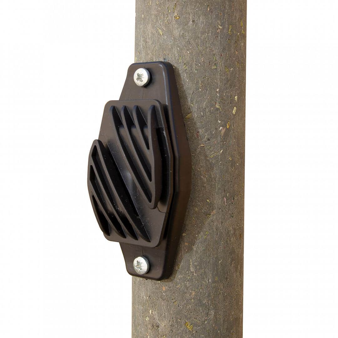 Osvědčený izolátor pro vodivou pásku. Snadno se připevňuje a bezpečně drží pásku na svém místě. Upevnění pomocí hřebíků znemožňuje krádež izolátoru.