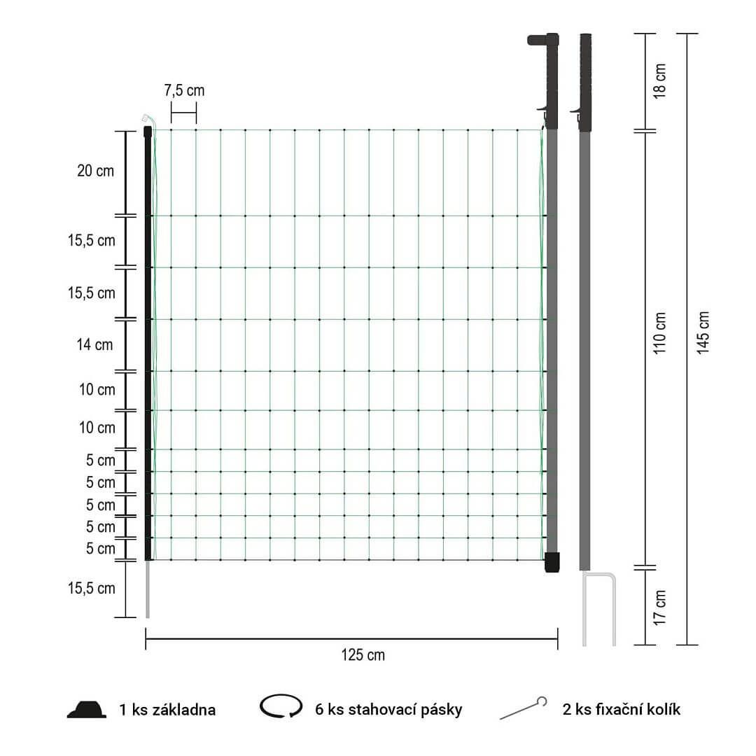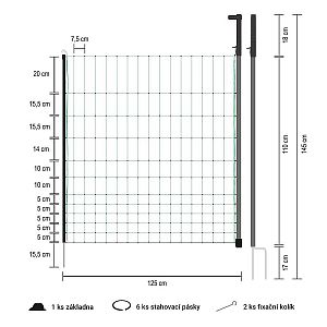 Vchodová branka k elektrické ohradníkové síti, 112 cm - rozměry a příslušenství