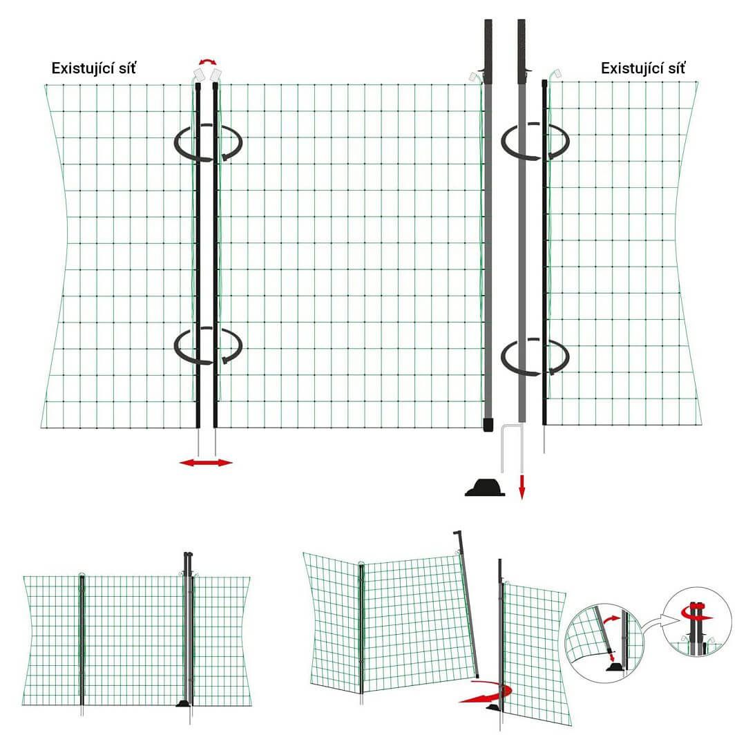 Praktická branka k sítí elektrického ohradníku, kterou lze instalovat na libovolné místo v síti. Slouží k bezpečnému a snadnému vchodu do ohrady bez nutnosti odpojení napájení.
