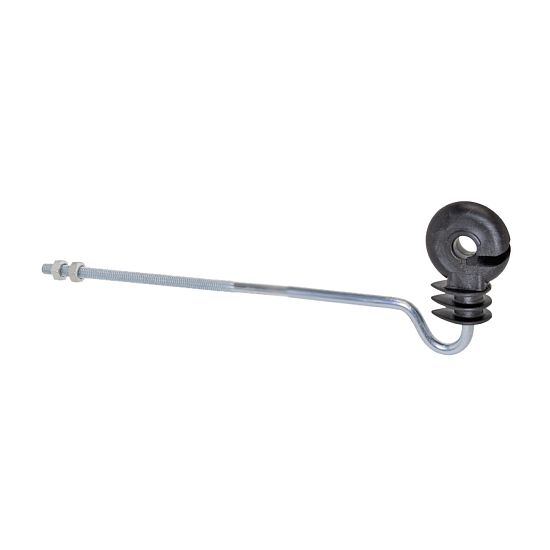 Popis výrobku Kruhový izolátor pro předsazené ohrady se zahnutou podpěrou, délka 22 cm, závit M6 - 10 ks