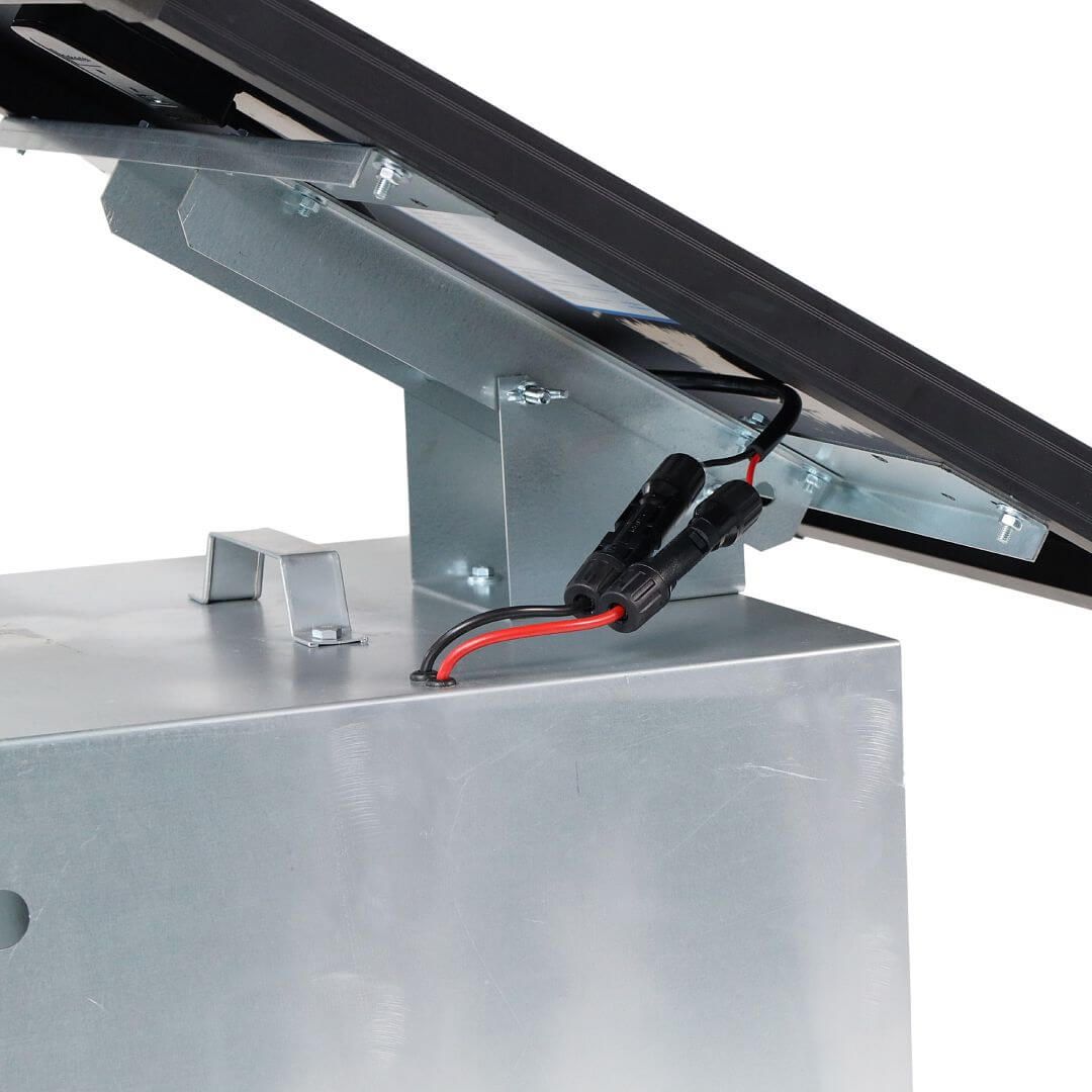Solární panel 100 W upevněný na přenosné schránce pomocí montážní konzole