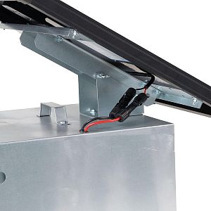Systém pro solární nabíjení baterie zdroje elektrického ohradníku. Sada neobsahuje generátor a baterii. Baterii a vhodný generátor s kombinovaným napájením je třeba dokoupit.