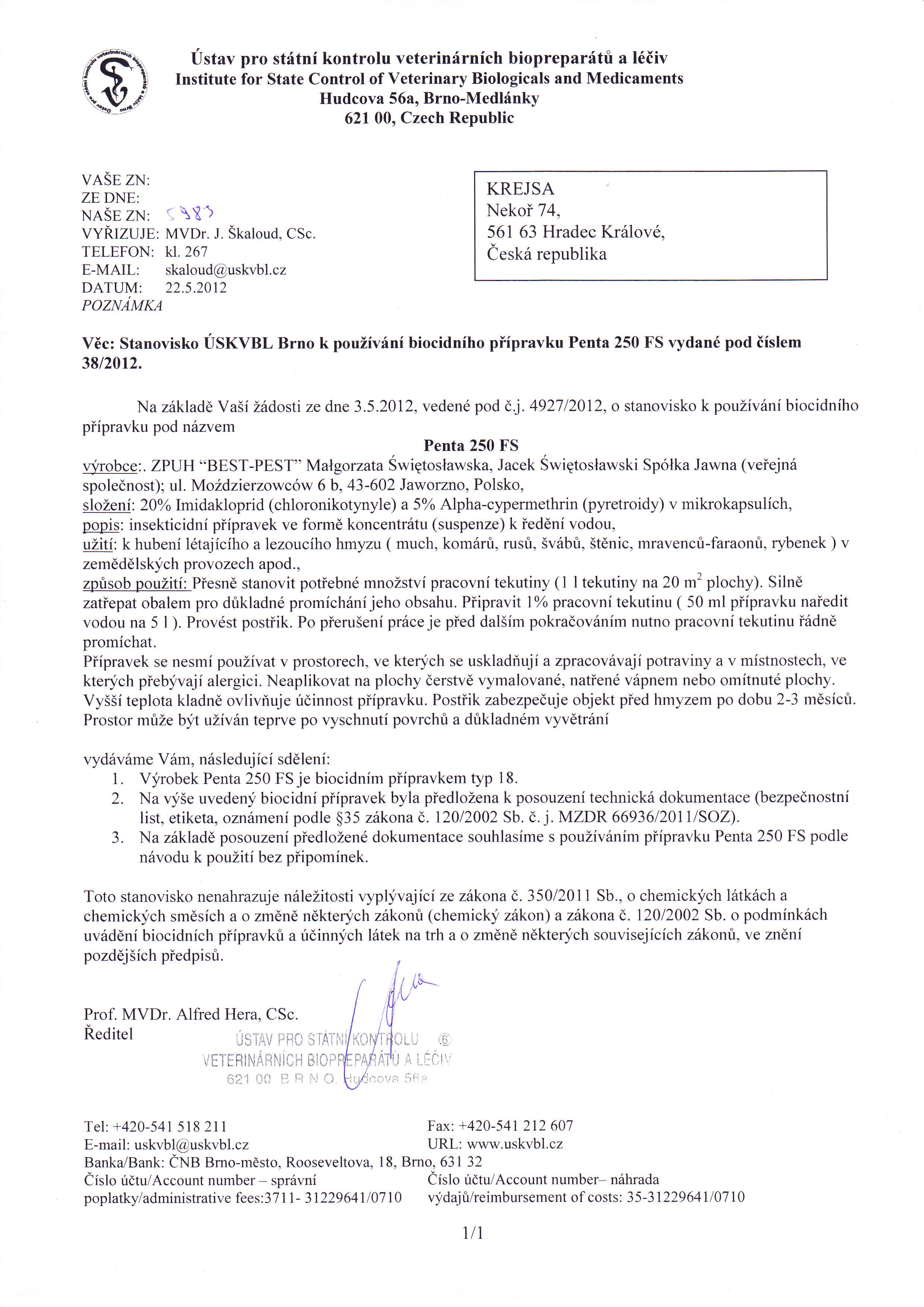 Popis výrobku Insekticid PENTA 250 FS 0,5l