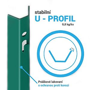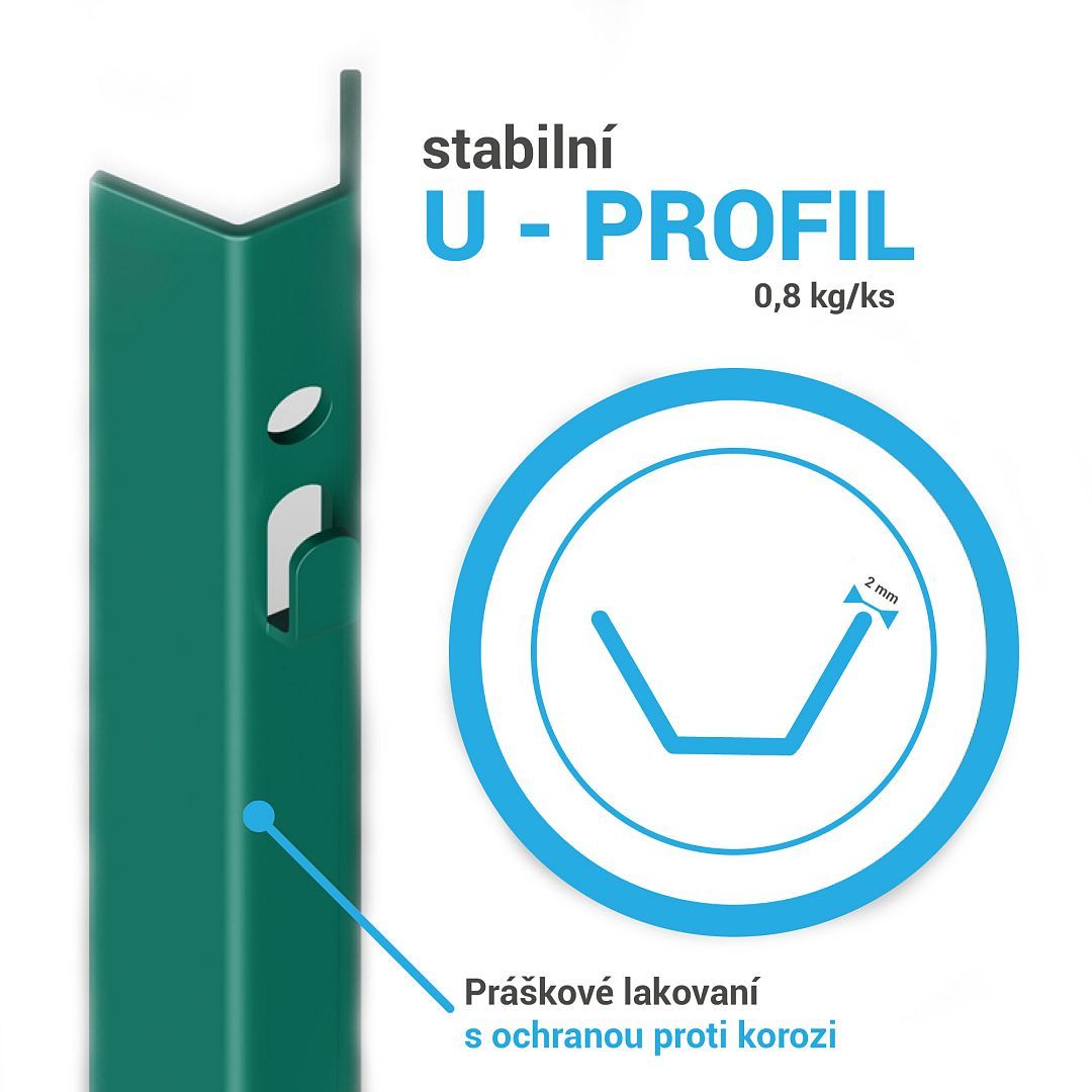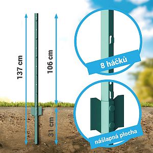 Kovový ohradníkový U-sloupek 137 cm + 4 další
