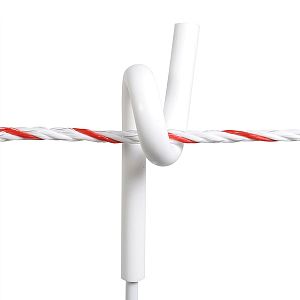 Bílý kovový ohradníkový sloupek s izolátorem krouceným očkem PIGTAIL.