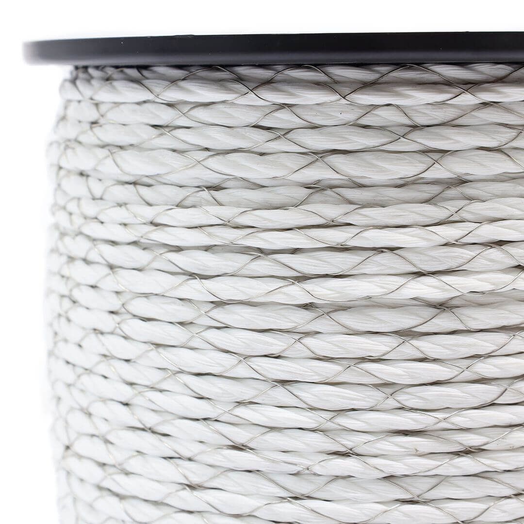 Vysoce kvalitní kroucené lano s drátěným opletem pro univerzální použití u elektrických ohradníků.