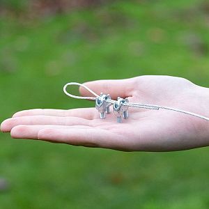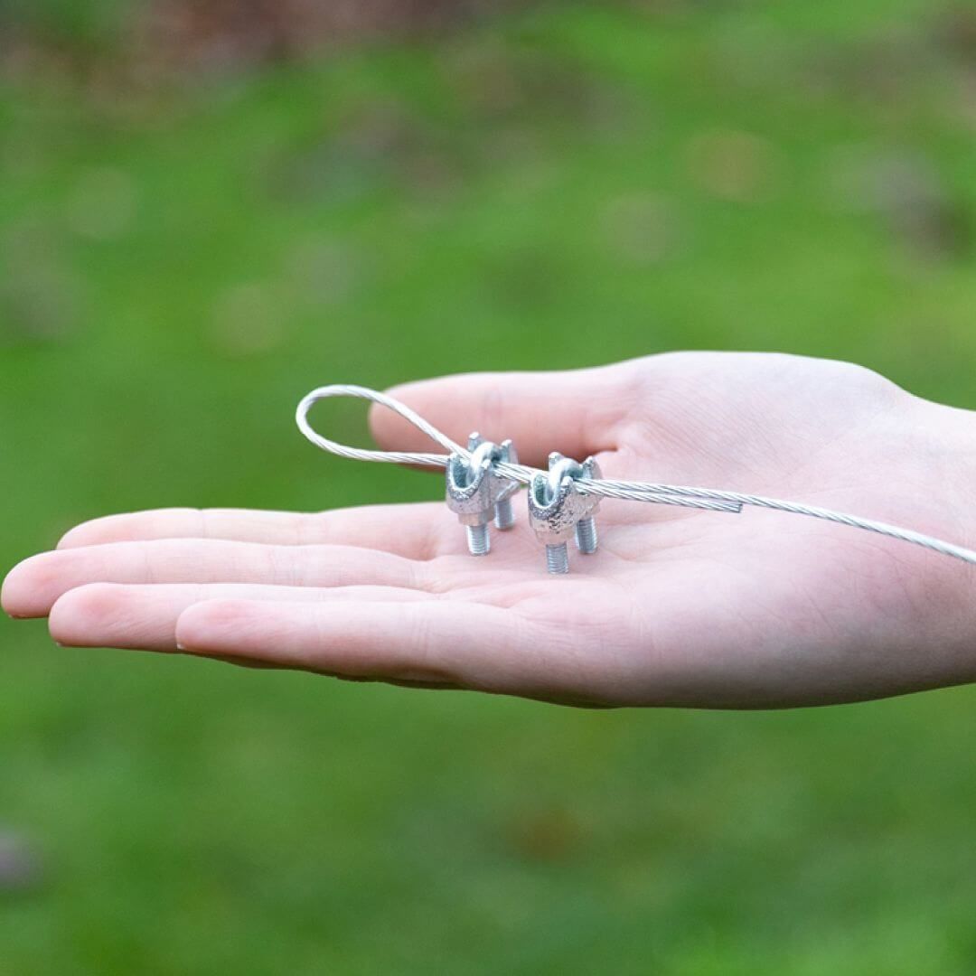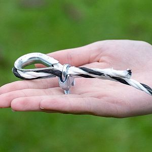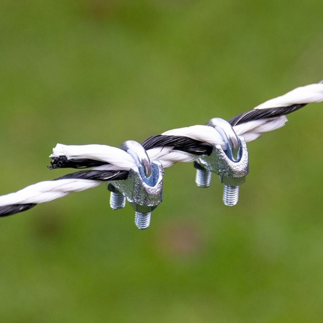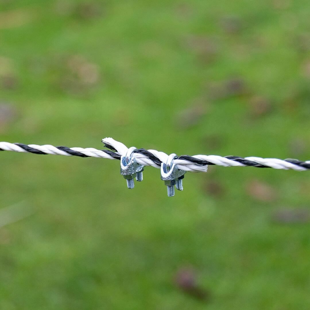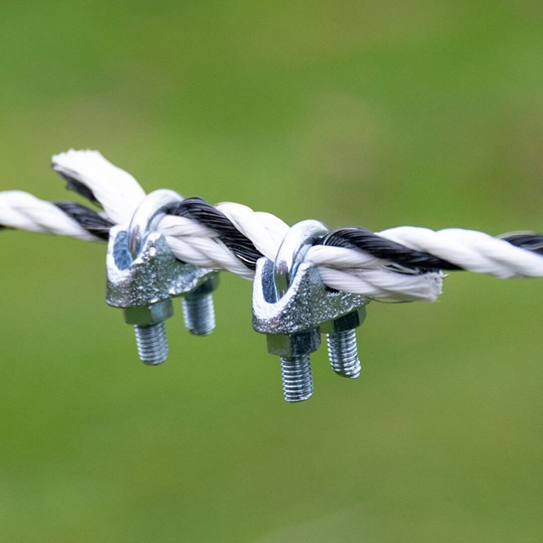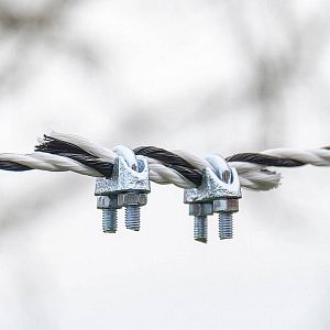 Pozinkovaná spojka na vodivá ohradníková lana s průměrem do 6 mm. Závit M6.
