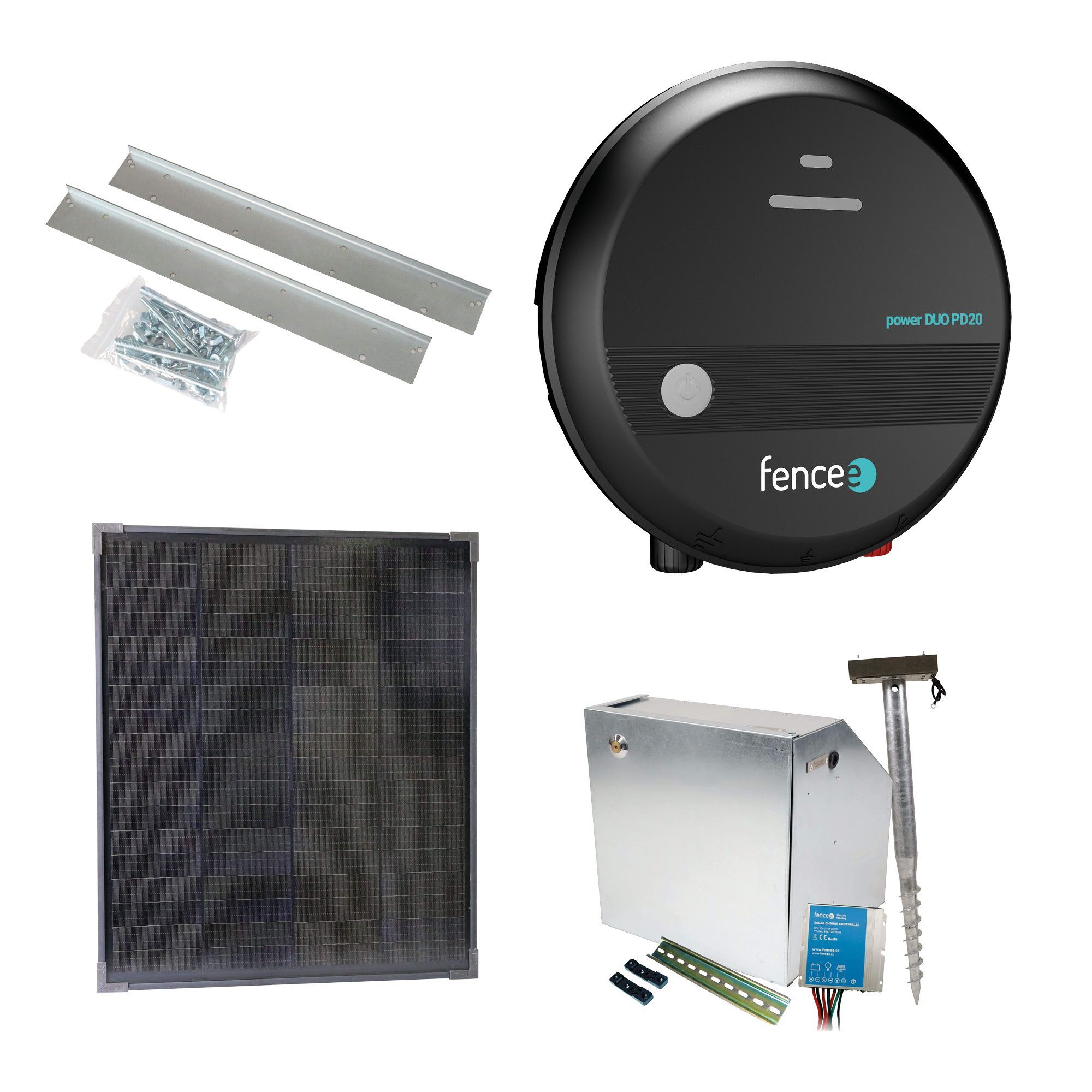 Bezpečnostní schránka pro zdroj elektrického ohradníku a baterii. Elektrifikovatelná kovová akumulátorová schránka s robustním montážním trnem. Schránku lze napojit na zdroj ohradníku, poté je pod napětím – ochrana proti krádeži, 2 × izolovaný klíč k bezpečnému otevření schránky. Včetně kompletní elektroinstalace a uzemnění. Disponuje DIN lištou fencee pro jednoduché a rychlé uchycení generátoru fencee. Regulátor 10 A pro solární panely s výkonem 40 W.