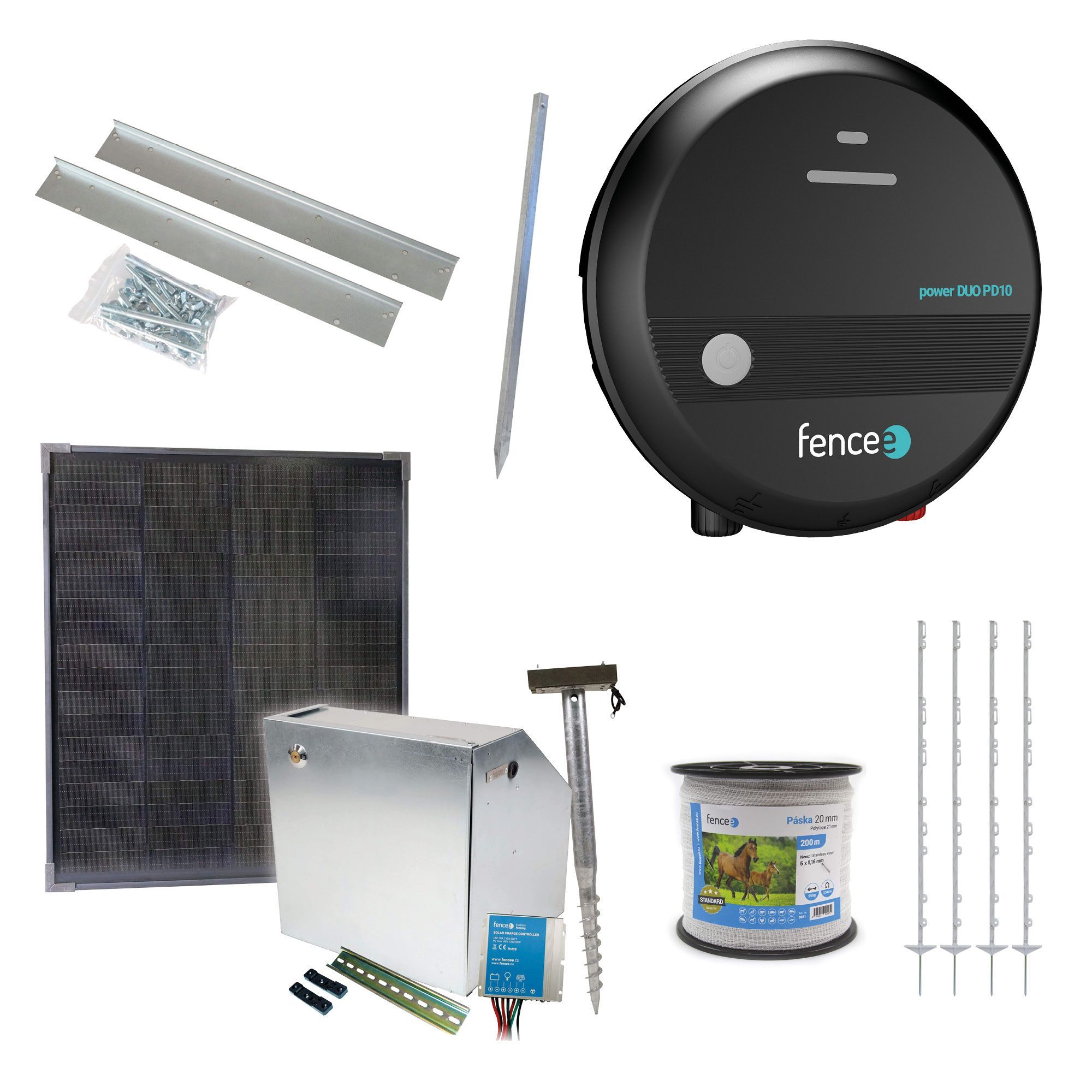 Zdroj elektrické ohrady 12/230 V s výkonem 1 J. Ohradník lze použít kdekoliv díky solárnímu nabíjení baterie. BrightLight LED dioda na přední straně zařízení signalizuje provoz zdroje. Možnost přepnutí výkonu na 50%, technologie SafeShock, ON/OFF tlačítko pro bezpečné ovládání generátoru a několik dalších funkcí generátorů fencee power DUO PD.