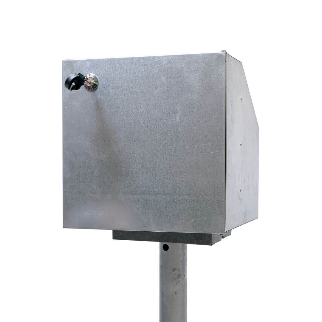 Bezpečnostní schránka pro zdroj elektrického ohradníku a baterii. Elektrifikovatelná kovová akumulátorová schránka s robustním montážním trnem. Schránku lze napojit na zdroj ohradníku, poté je pod napětím – ochrana proti krádeži, 2 × izolovaný klíč k bezpečnému otevření schránky. Včetně kompletní elektroinstalace a uzemnění. Disponuje DIN lištou fencee pro jednoduché a rychlé uchycení generátoru fencee. Regulátor 10 A pro solární panely s výkonem 100 W.
