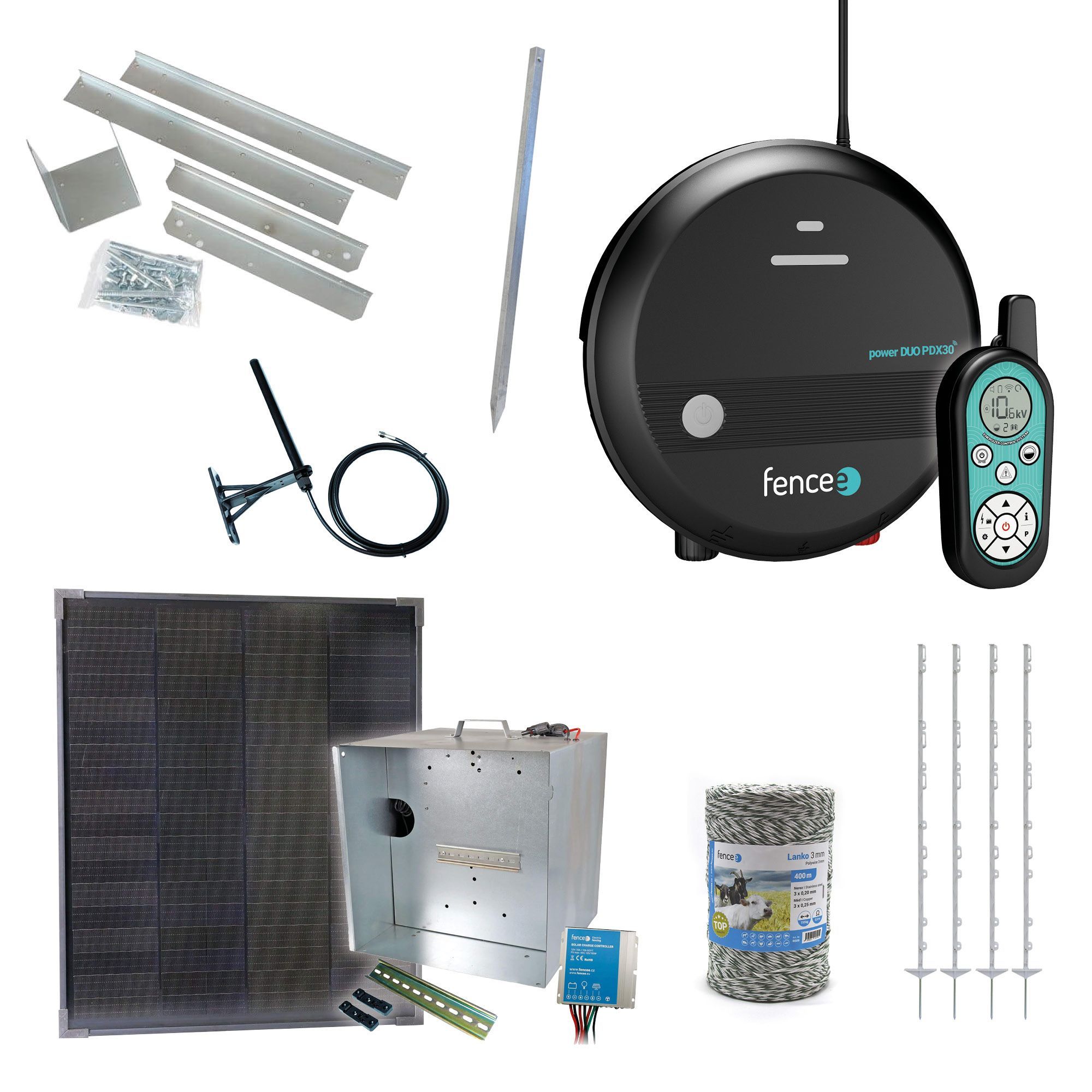 Praktické řešení pro provoz ohradníku na místech bez elektřiny během sezóny. Sada ohradníku se solárním napájením vhodná pro elektrické ohrady s různými zvířaty, např. skot, ovce nebo kozy.