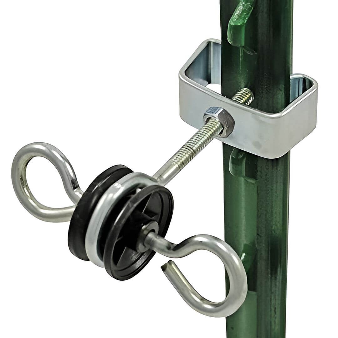 Bránový izolátor s adaptérem pro připevnění na ohradníkové T-sloupky.