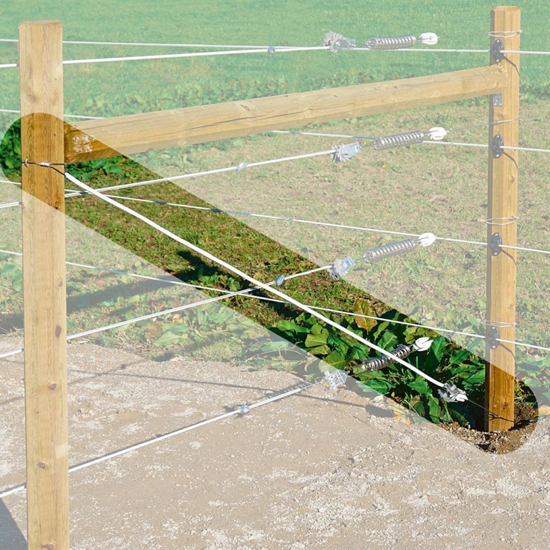 Kotevní rohová sada pro diagonální zpevnění začátku a konce pevné elektrické ohrady s kůly. Pro kůly do ø 160 mm.