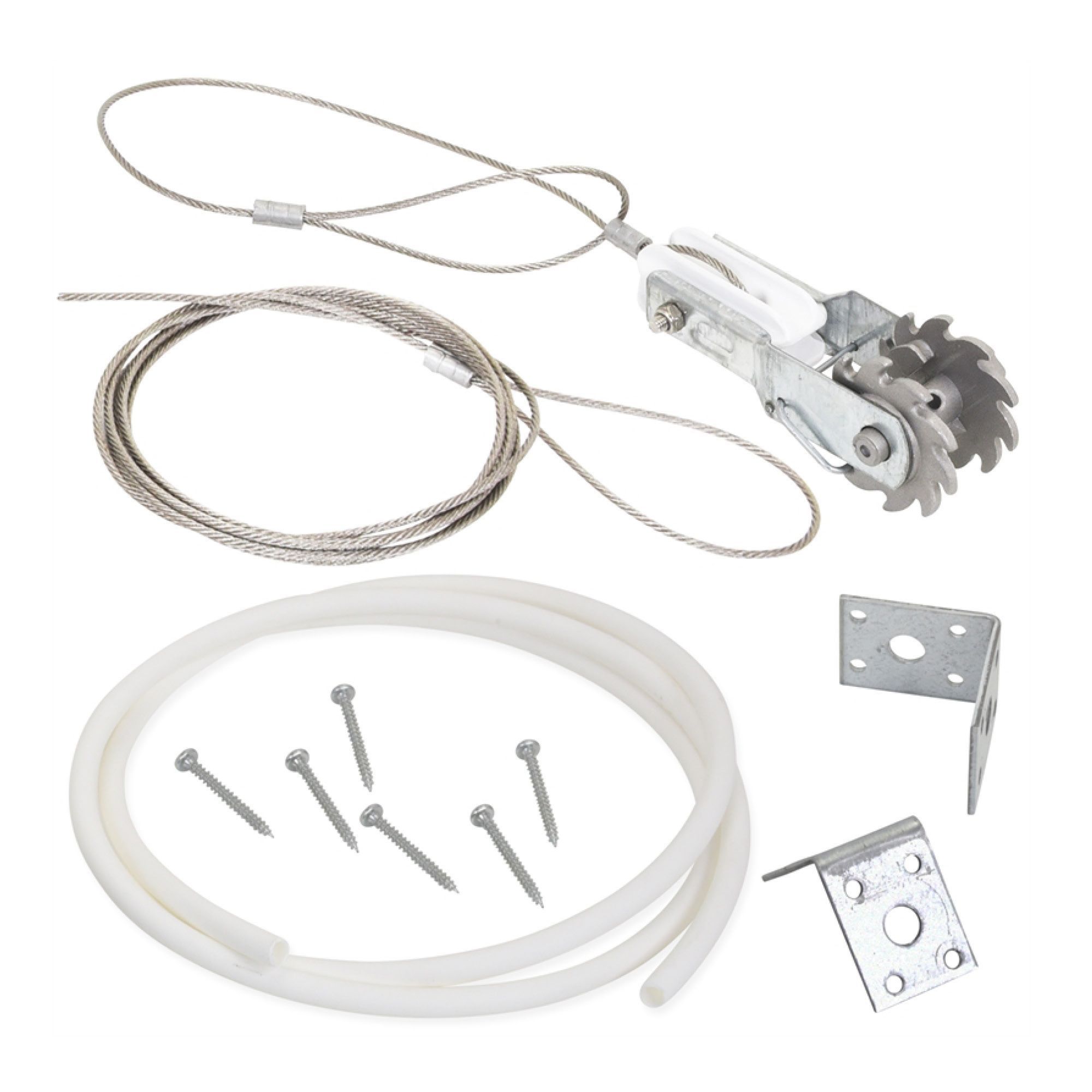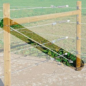 Obsahuje: napínák drátu s integrovaným plastovým izolátorem, ochrannou hadici, 2 x 90° kovové úhelníky, smyčku z nerezového lana a vruty do dřeva.