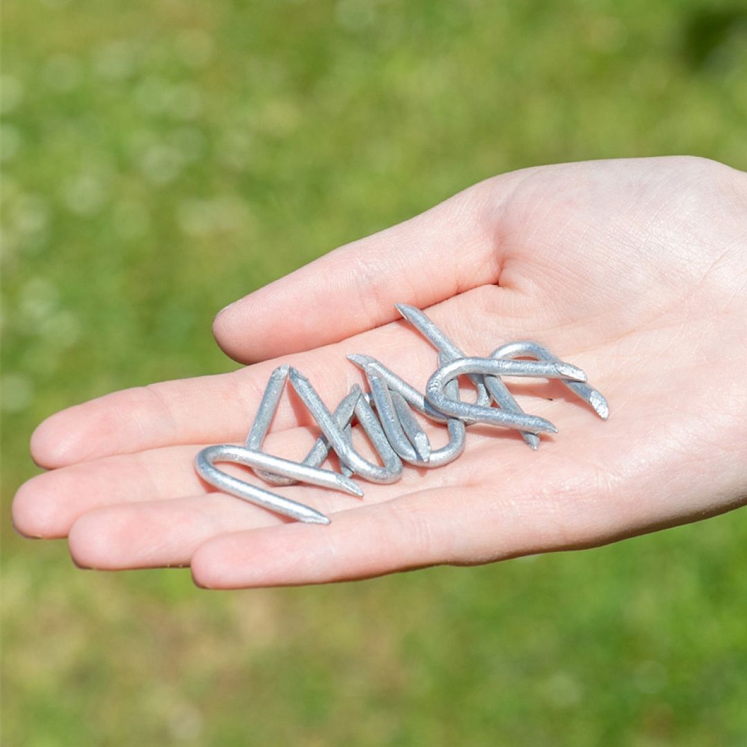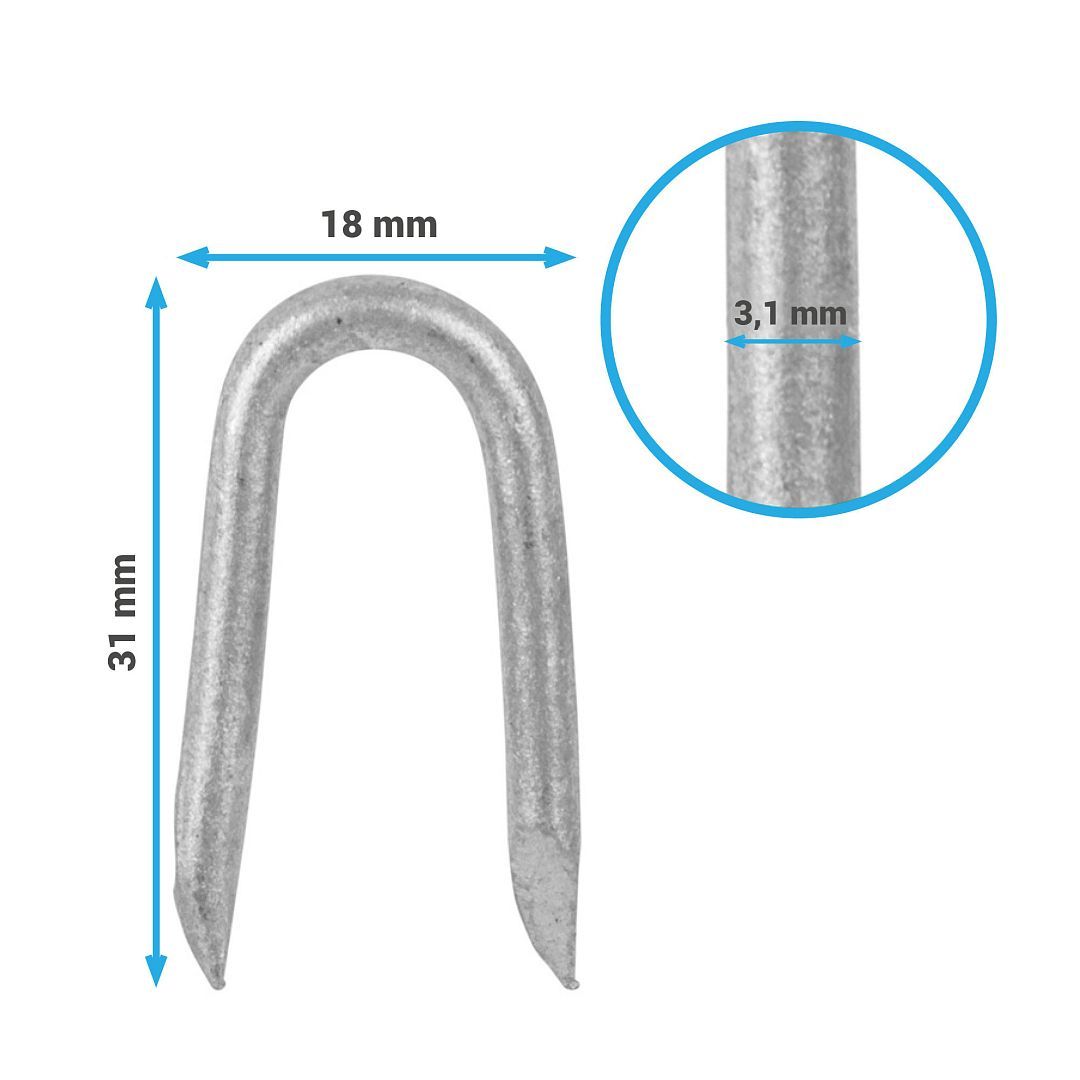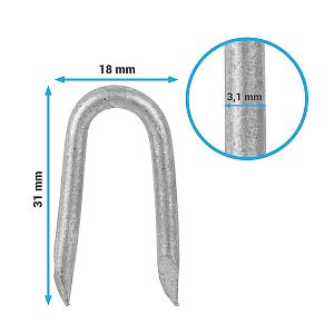 Zinkované skoby k upevnění ostnatého drátu, spona na ohradní uzlové pletivo 3,1 × 31 mm balení 100 g - tloušťka drátu 3,1 mm, délka 31 mm, zinkováno.