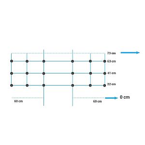 Ohradníková elektrická síť proti divočákům s flexibilním použitím. Tři řady s 3 × 0,30 mm TriCond vodiči. Snadná montáž i demontáž. Díky světlé výšce 22 cm lze pod sítí snadno sekat trávu. Obsahuje sadu na opravu sítě.