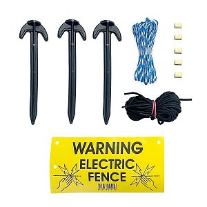 Kompletní sada obsahuje vše potřebné k sestavení elektrické ohrady proti divokým prasatům. Zemnící tyč, kovová bleskojistka a vysokonapěťový kabel je součástí.