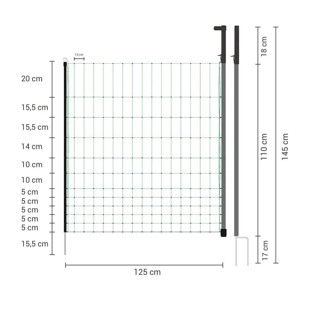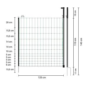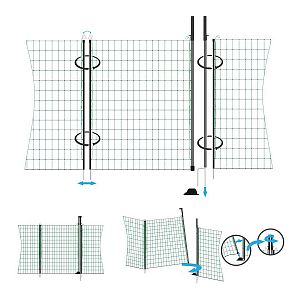 Branka k síti pro elektrický ohradník, výška 110 cm, šířka 125 cm, dvojitý hrot + 5 další