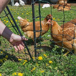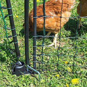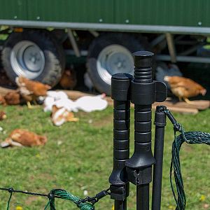 Praktická branka k síti pro elektrický ohradník, kterou lze instalovat na libovolné místo v elektrické síti. Umožňuje přístup do drůbežího výběhu bez nutnosti vypnutí nebo odpojení zdroje ohradníku.