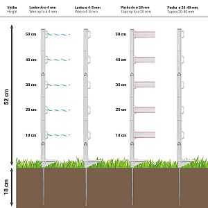 - Celková výška sloupku 70 cm / nad zemí 52 cm