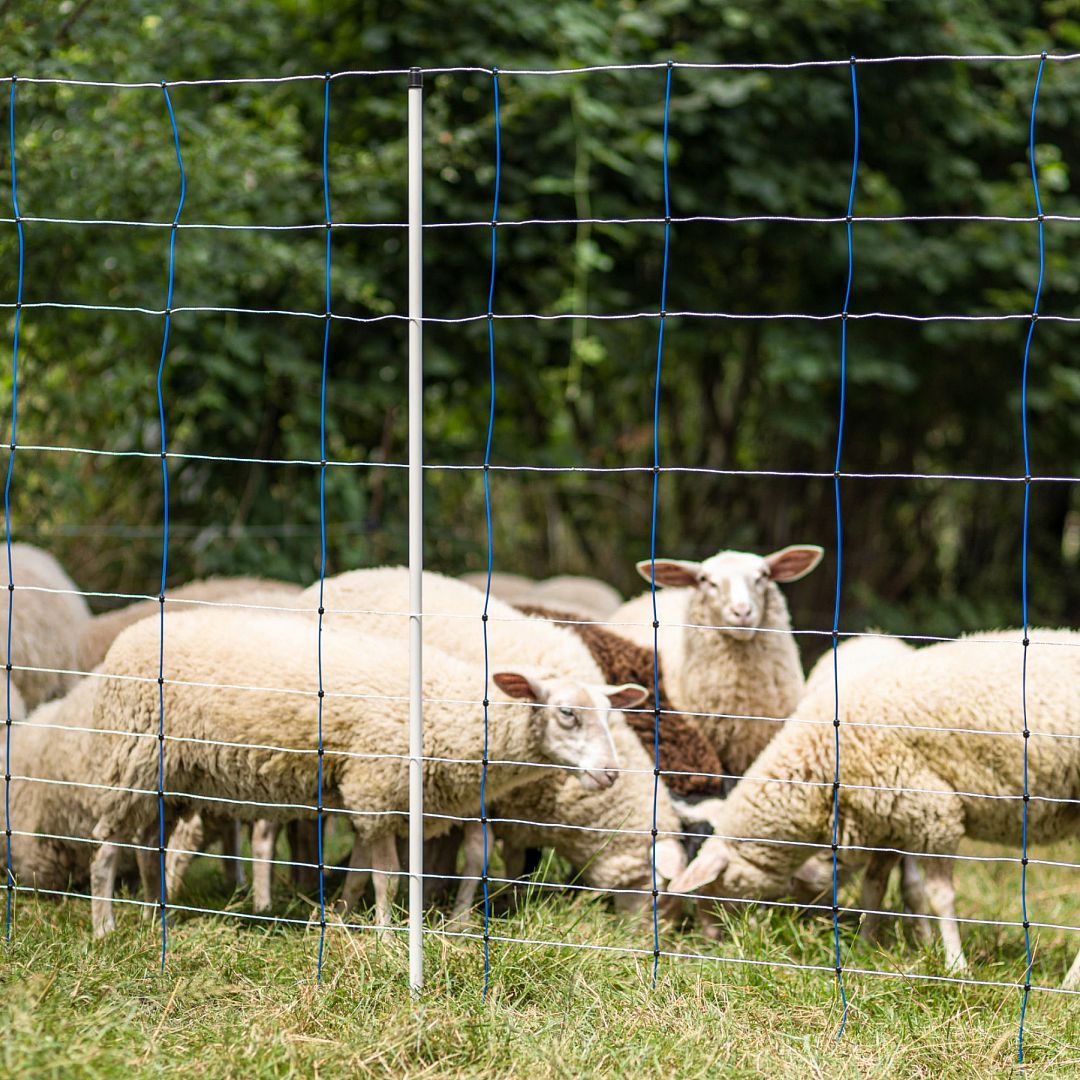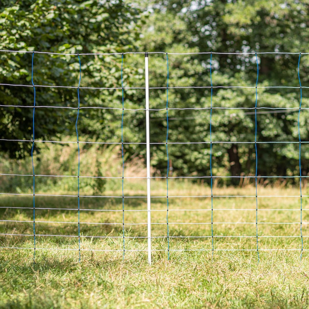Speciální modrá síť proti vlkům na elektrický ohradník pro ovce. Vertikálně jsou místo měkkého lankového materiálu použity tuhé plastové vzpěry. Ty jsou pevně spojeny s vodorovnými prameny ve vzdálenosti 30 cm a zajišťují tak mimořádnou stabilitu i na kopcovitém a nerovném terénu.