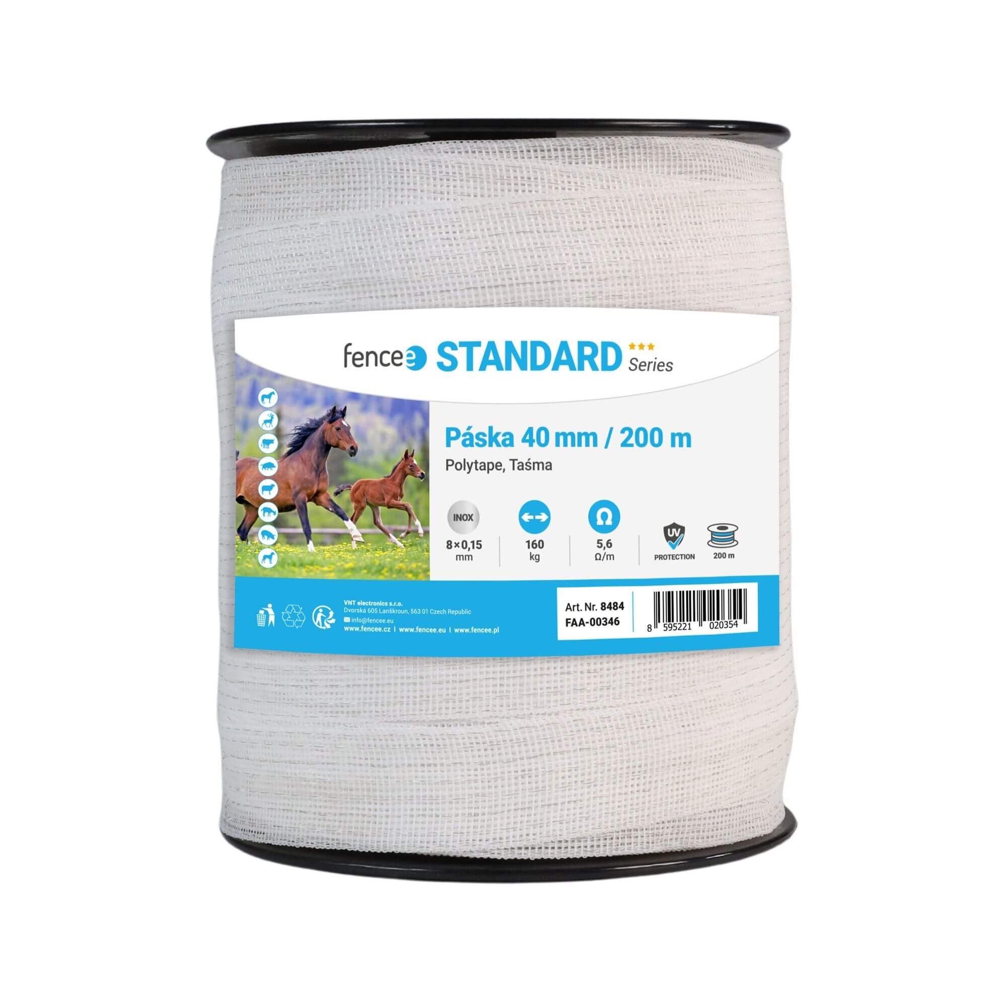 Ohradníková bílá páska v šířce 40 mm vhodná především pro elektrické ohradníky s koňmi. Kvalitní vodivá páska s UV ochranou a odolností vůči povětrnostním podmínkám je vhodná pro dlouhodobé ohrazení. Páska je jednoduchá pro montáž. Lze snadno demontovat a uskladnit pro další použití.