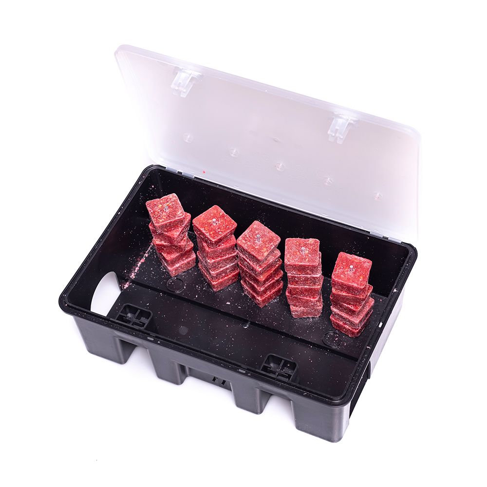 Plastové krmítko pro potkany lze bezpečně uzamknout dodávaným klíčem, aby se zabránilo neoprávněnému přístupu k prostředku na hubení hlodavců. Konstrukce krmítka umožňuje aplikaci většího množství hubicího přípravku (625 g). Díky průhlednému materiálu je snadné sledování obsahu bez nutnosti otevírání. Nástraha není součástí krmítka.