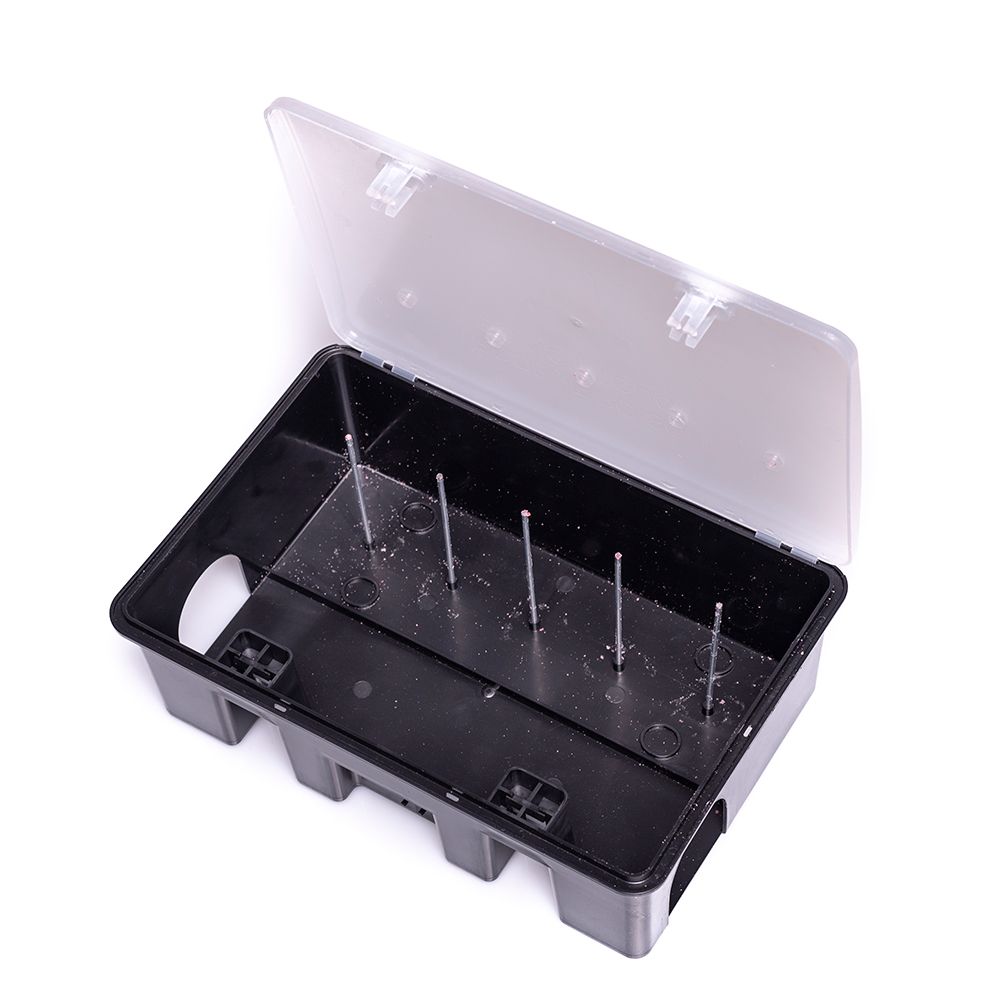 Popis výrobku Deratizační stanička na potkany s 5 hroty, průhledná