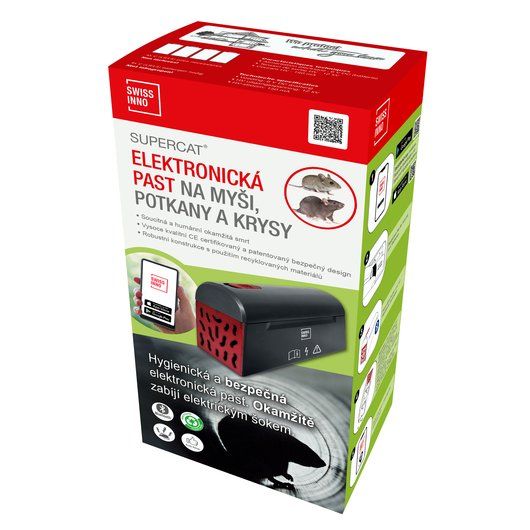 Elektronická past na myši, potkany a krysy SuperCat je výkonná, takže chycení hlodavci jsou rychle a humánně zabiti a pro uživatele je absolutně bezpečná. To je zajištěno bezpečným designem s certifikací CE a spolehlivým 3-lamelovým spouštěcím mechanismem, který lze aktivovat pouze uvnitř pasti.