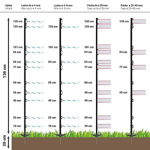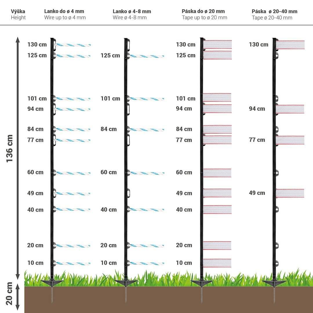 Vlastnosti černého sloupku 156 cm pro elektrický ohradník: