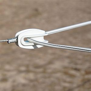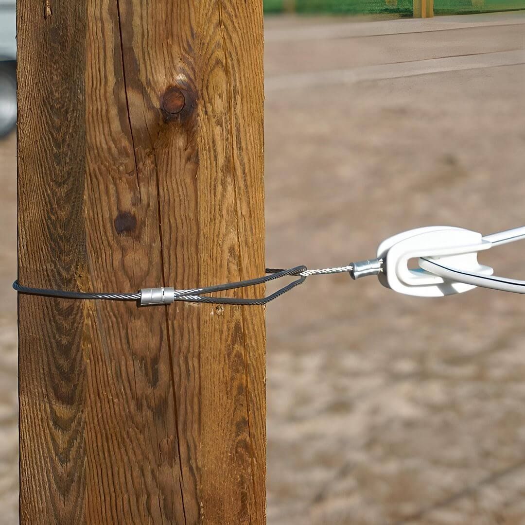 TIP: S tímto praktickým rohovým řešením pevné elektrické ohrady můžete rychle namontovat jakýkoli drát pro elektrický ohradník na rohové kůly. Uchycení je jednoduché. Smyčka se navléká přes horní část kůlu. Utáhněte smyčku v požadované výšce.