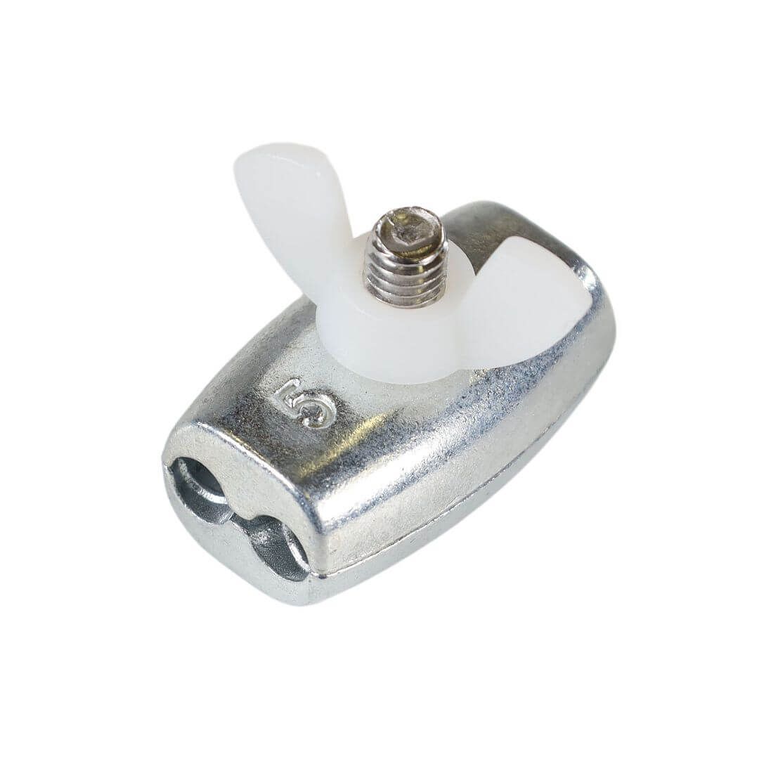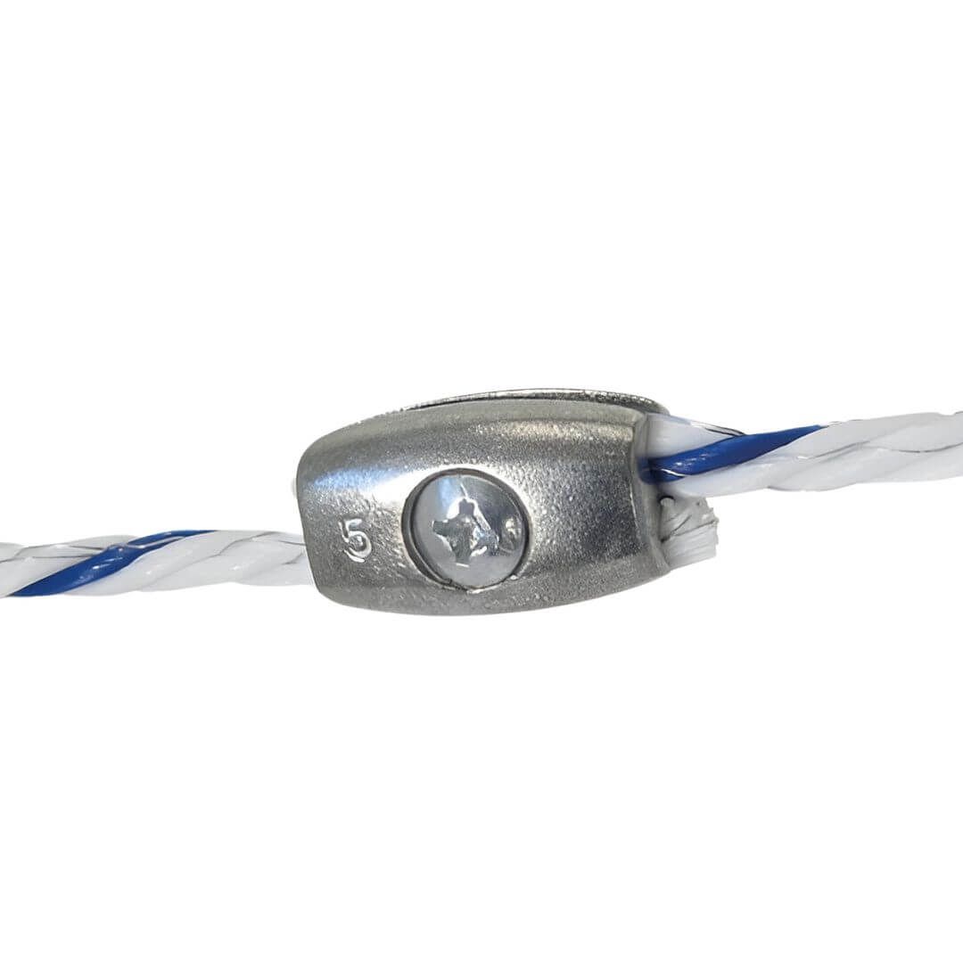 Pozinkovaná kovová spojka na lana pro elektrický ohradník s průměrem v rozmezí 4,5 - 6,5 mm.