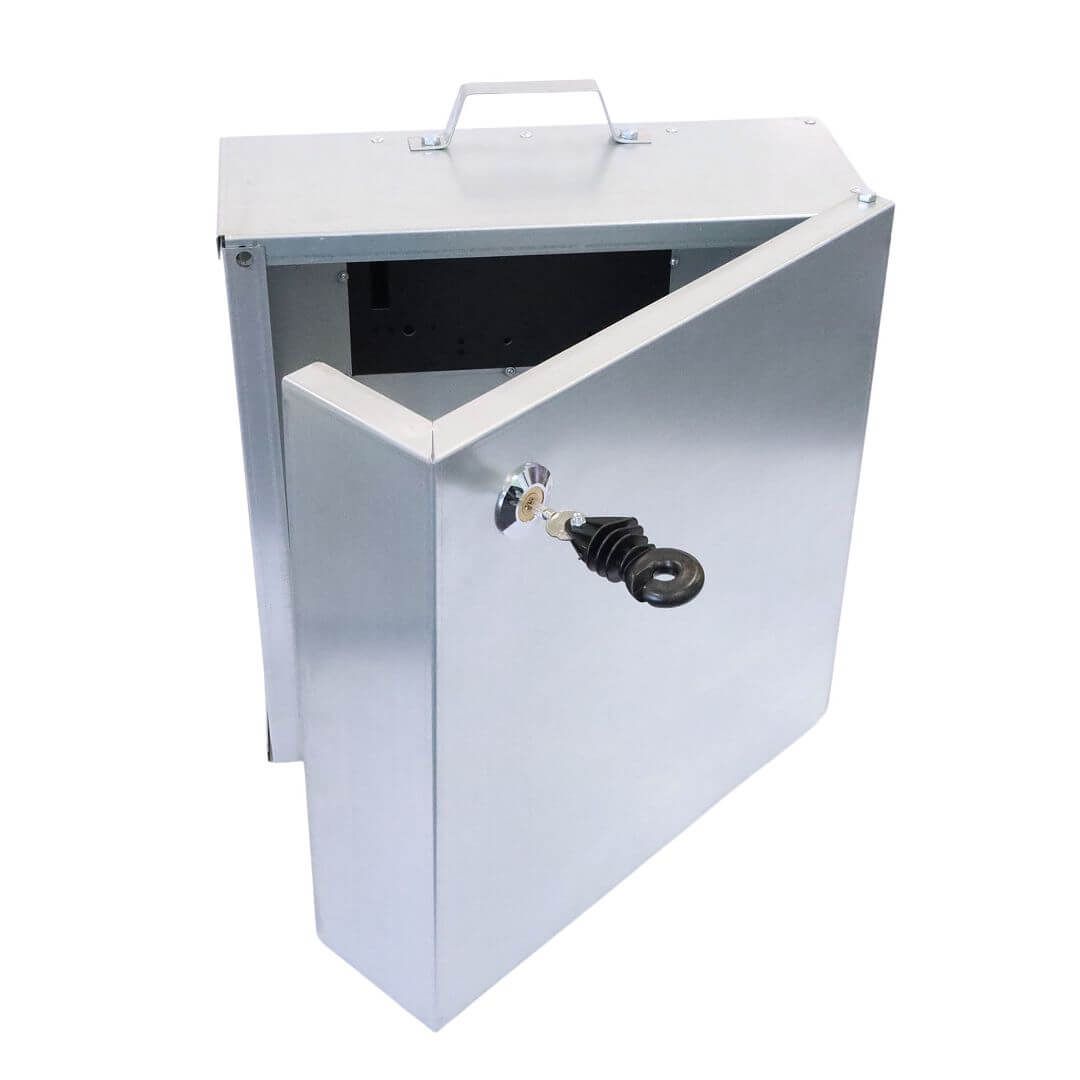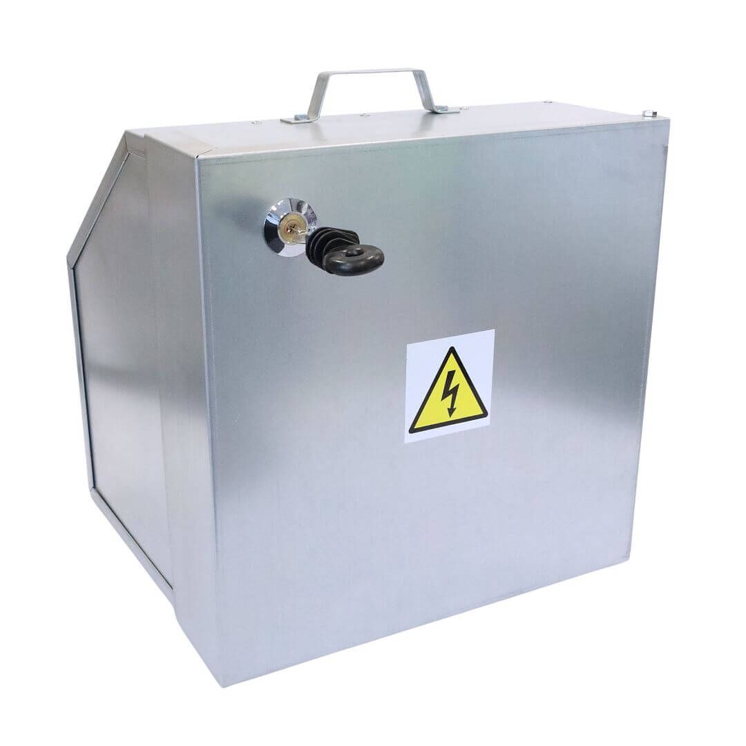 Bezpečnostní schránka pro jakýkoliv zdroj elektrického ohradníku a baterii s ochranou proti povětrnostním vlivům a dostatečnou ochranou proti krádeži. Pokud se schránky dotkne nepovolaná osoba, dostane nepříjemný elektrický šok. K otevírání slouží izolovaný klíč (2 ks součástí balení).