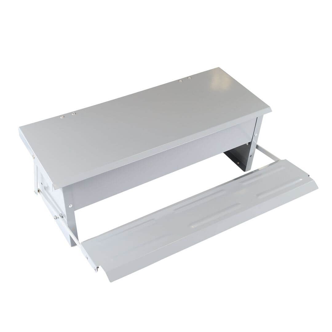TIP: Krmítko s nášlapnými dvířky, která se automaticky otevřou, když slepice na krmítko šlápne. Tímto je krmení dostupné jenom vašim slepicím a je chráněné před vnějšími vlivy.