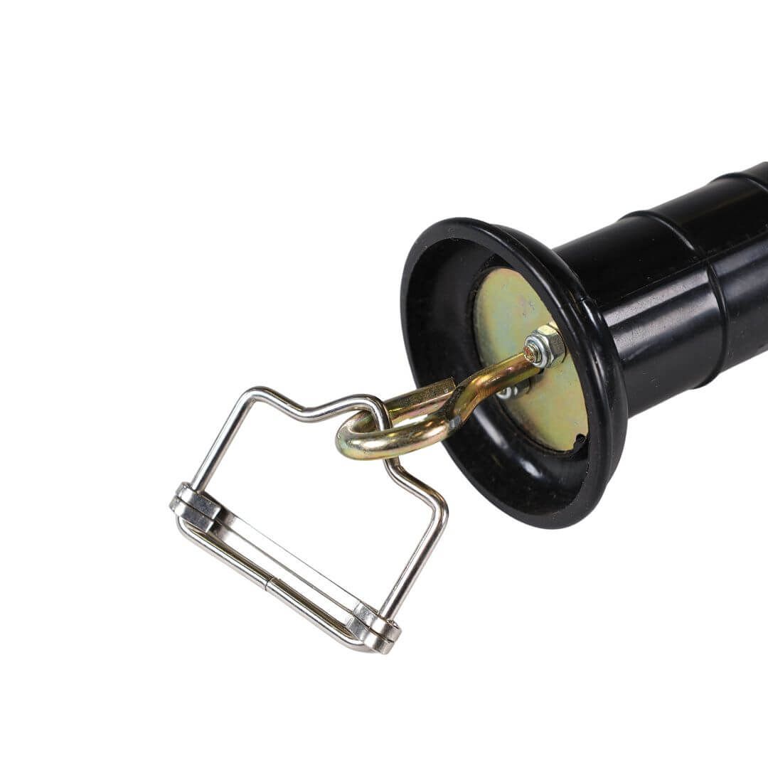 Černý držák k brance pro elektrický ohradník s integrovanou spojkou pro elektrické pásky.
