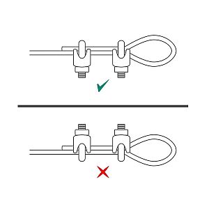 TIP: Pro pevný spoj je třeba dbát na to, aby ocelová lana byla do spojky vložena nad sebou.