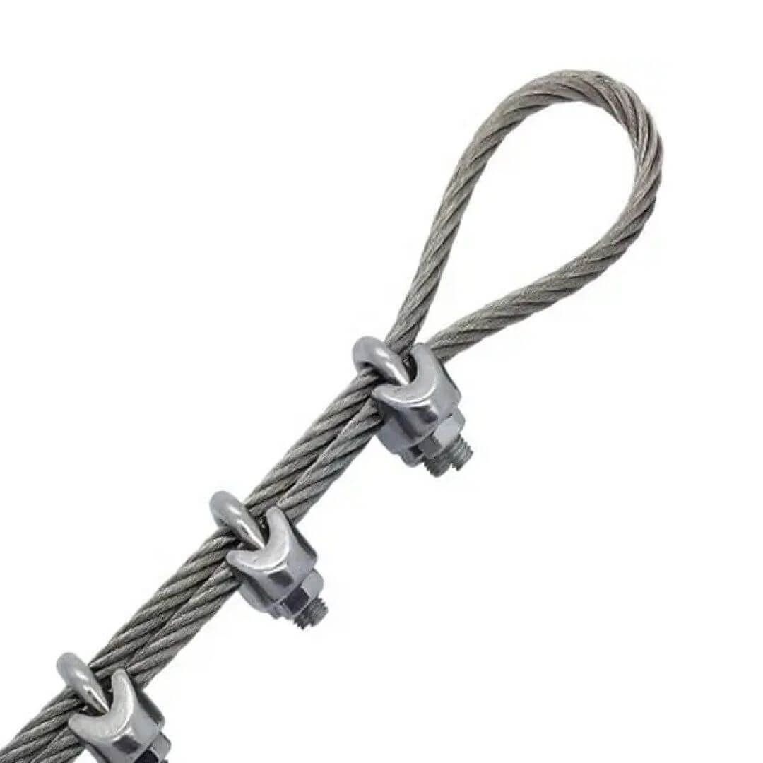 Pozinkovaná kovová spojka pro ocelová lana s ø do 14 mm. Velmi pevný spoj. Závit M6.