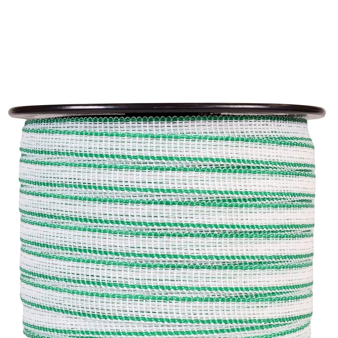 Páska pro elektrický ohradník 12,5 mm, bílo-zelená, 200 m, 0,5 Ω/m