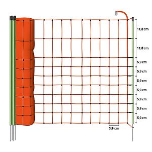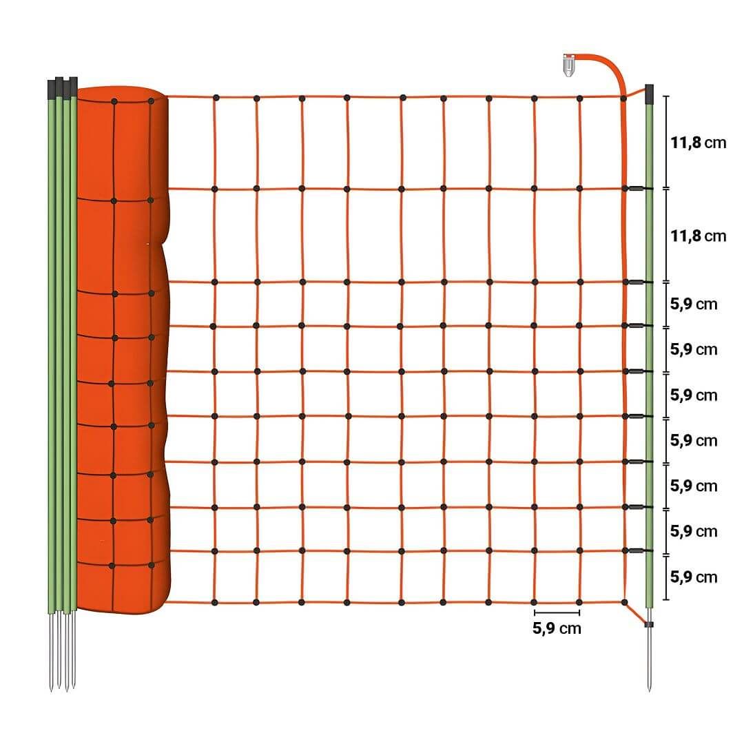 Vodivá ohradníková síť pro psy, králíky a kočky, výška 65 cm, délka 50 m, oranžová