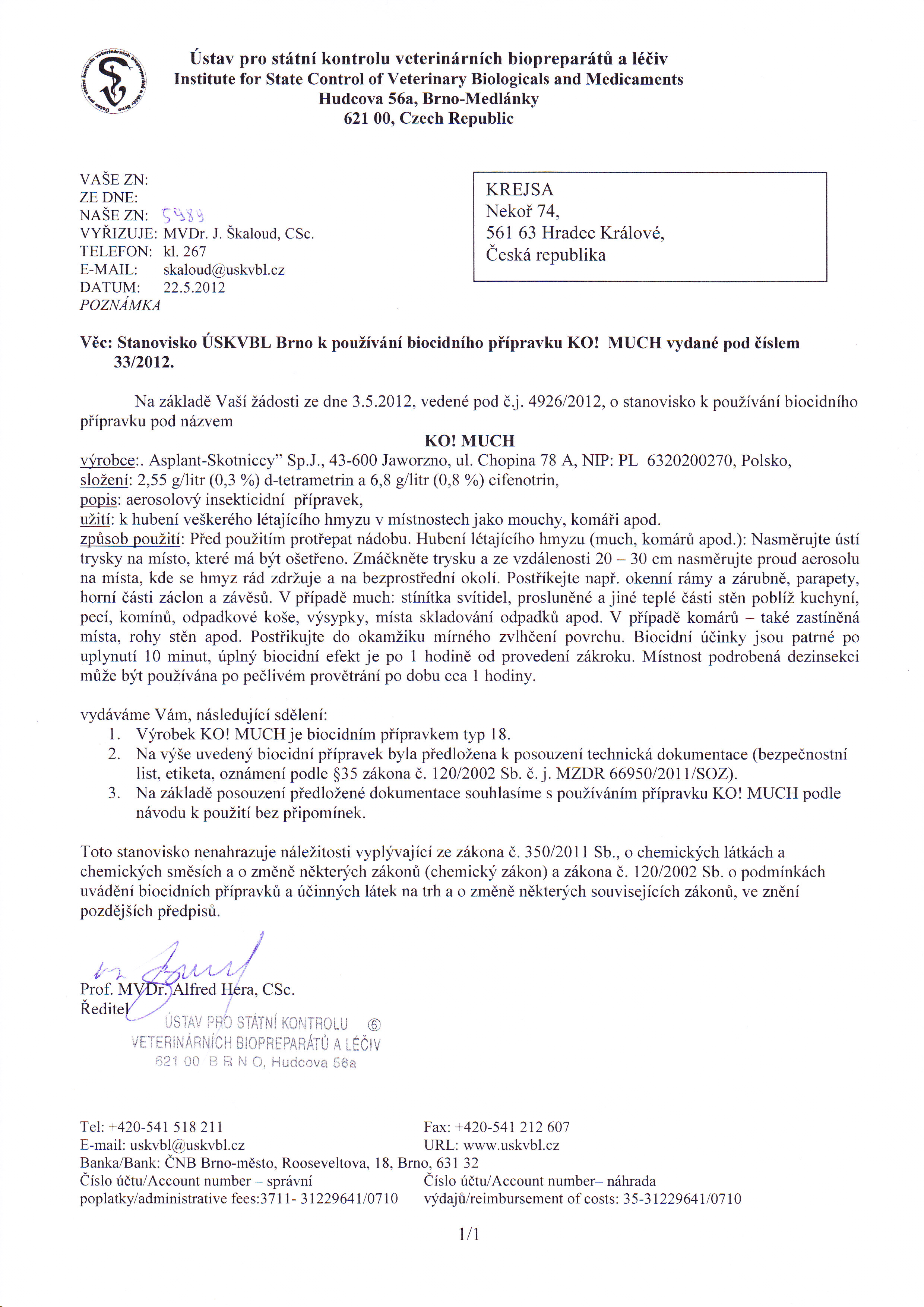 Popis výrobku Insekticid KO!MUCH na mouchy
