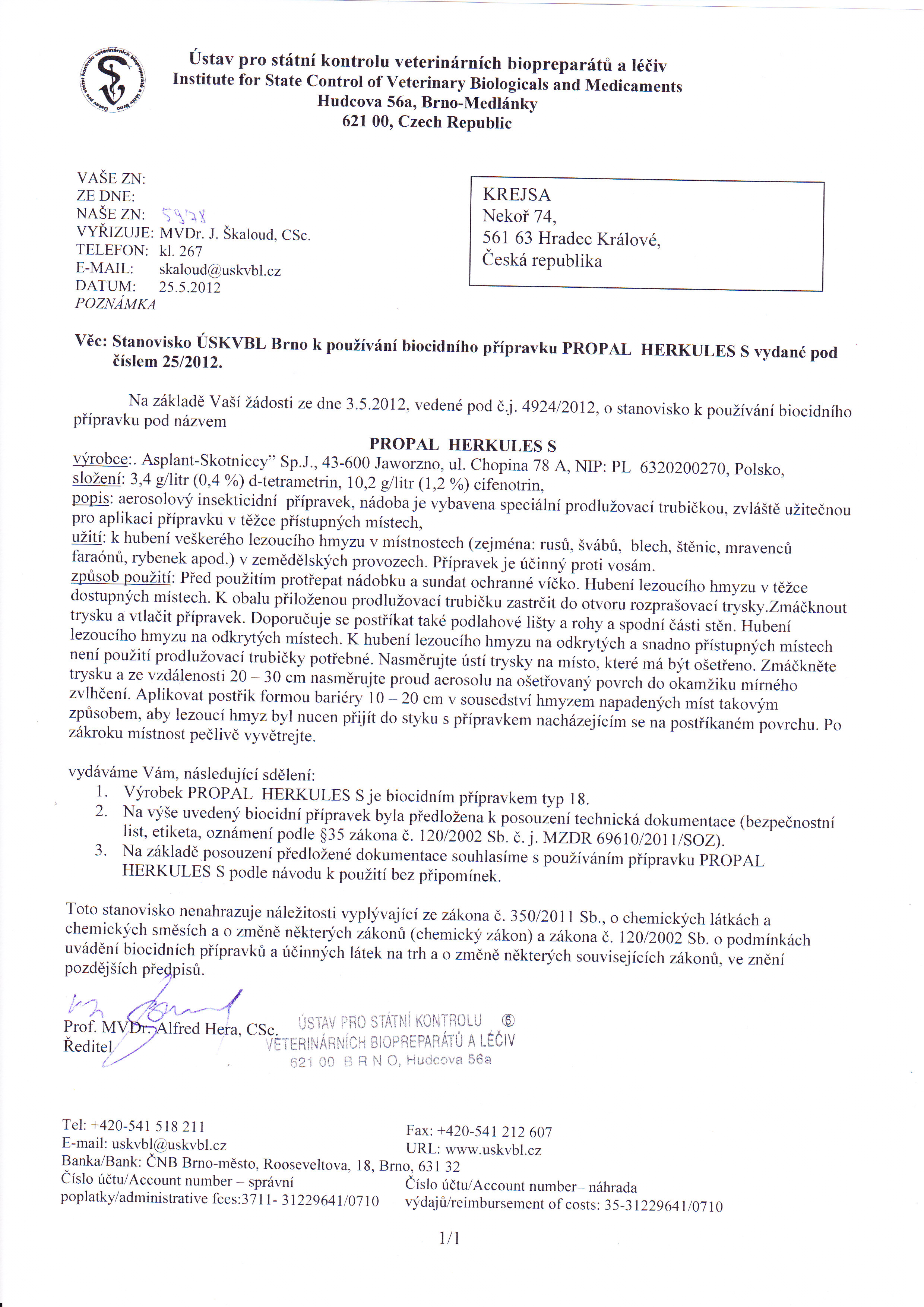 Složení insekticidu PROPAL HERKULES S - (MAX - na vosy a sršně)